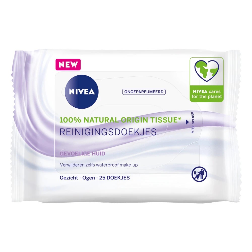 Nivea Sensitive ReinigingsdoekjesDe Nivea Sensitive Reinigingsdoekjes, verrijkt met Dexpanthénol, zijn mild voor het gezicht en reinigen effectief en verwijderen make-up en zelfs waterproof mascara. Bovendien verfrissen en hydrateren de doekjes de huid. Zonder parfum, alcohol en kleurstoffen.De formule bevat geen parfum, alcohol en kleurstoffenOntwikkeld voor de gevoelige huidGebruik de doekjes uitsluitend om het gezicht te reinigenGebruikReinig voorzichtig gezicht, hals en ogen met het zachte