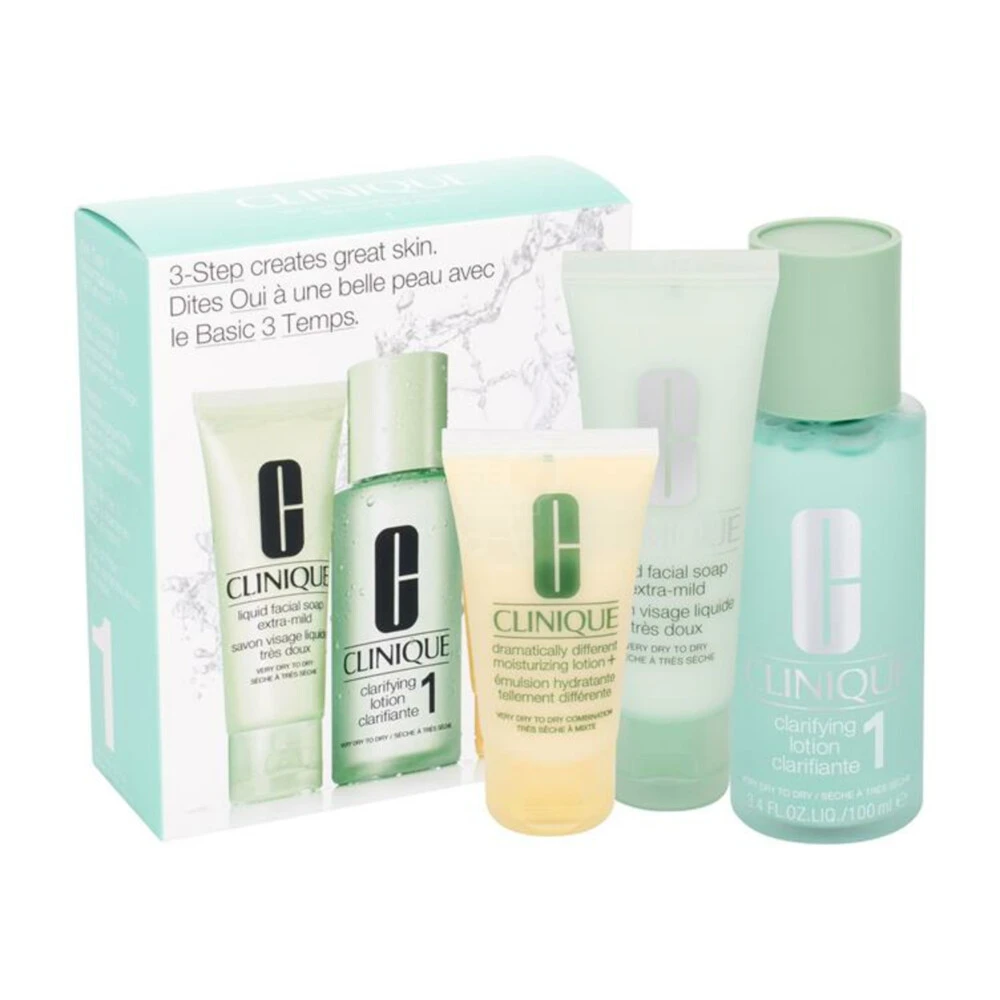 Clinique Gezichtsverzorgingsset Skin Type 1, 3 stuksHet 3-Stappen huidverzorgingssysteem is ontwikkeld door dermatologen en op maat gemaakt voor elk huidtype, in dit geval type 3. Deze logische routine van reinigen, exfoliëren, hydrateren is alles wat je nodig hebt om stralend, helder, vol leven te ontwaken.Altijd geformuleerd voor maximale resultaten zonder irritatieGetest op allergieën100% parfumvrijOntwikkeld voor huidtype 1