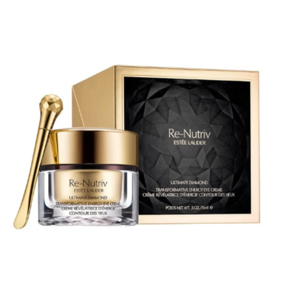 Estee Lauder Re-Nutriv Oogcreme De transformatie begint zodra deze intens rijke maar toch lichte crème uw huid raakt. Met kostbaar Black Diamond truffelextract. Met de kracht van geavanceerde, vormgevende technologieën.Uw oogcontouren zien er helderder, opgewekt en strakker uit. De contouren lijken jonger, meer gelift. Donkere kringen en zwellingen lijken verminderd zodat de ogen er gerevitaliseerd en frisser uitzien. De massagestaaf, gemaakt van een verkoelend gouden legering,