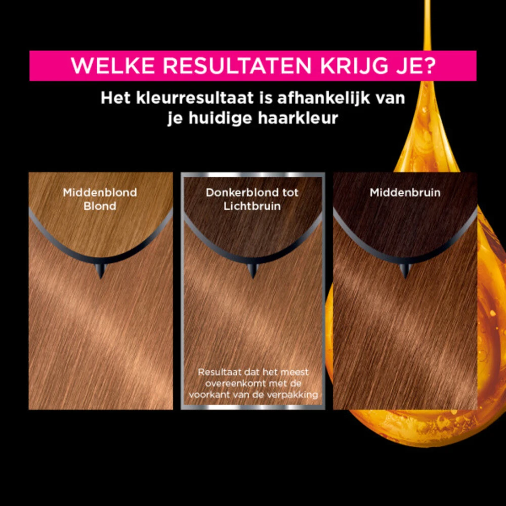 Garnier Olia Haarverf 7.0 – Donkerblond- Intense, levendige en langhoudende kleur- Zichtbaar verbeterde haarkwaliteit, kleur na kleur- 3x Glanzender haar**- 35% zachter haar**- Zonder ammoniak voor een aangename geur- Tot 100% GrijsdekkingErvaar nu de kracht van pure oliën met Garnier Olia!De permanente thuiskleuring met 100% grijsdekking op basis van 60% oliën* geeft het haar een intense kleur, een schitterende glans, en zichtbaar verbeterde haarkwaliteit, kleur na kleu