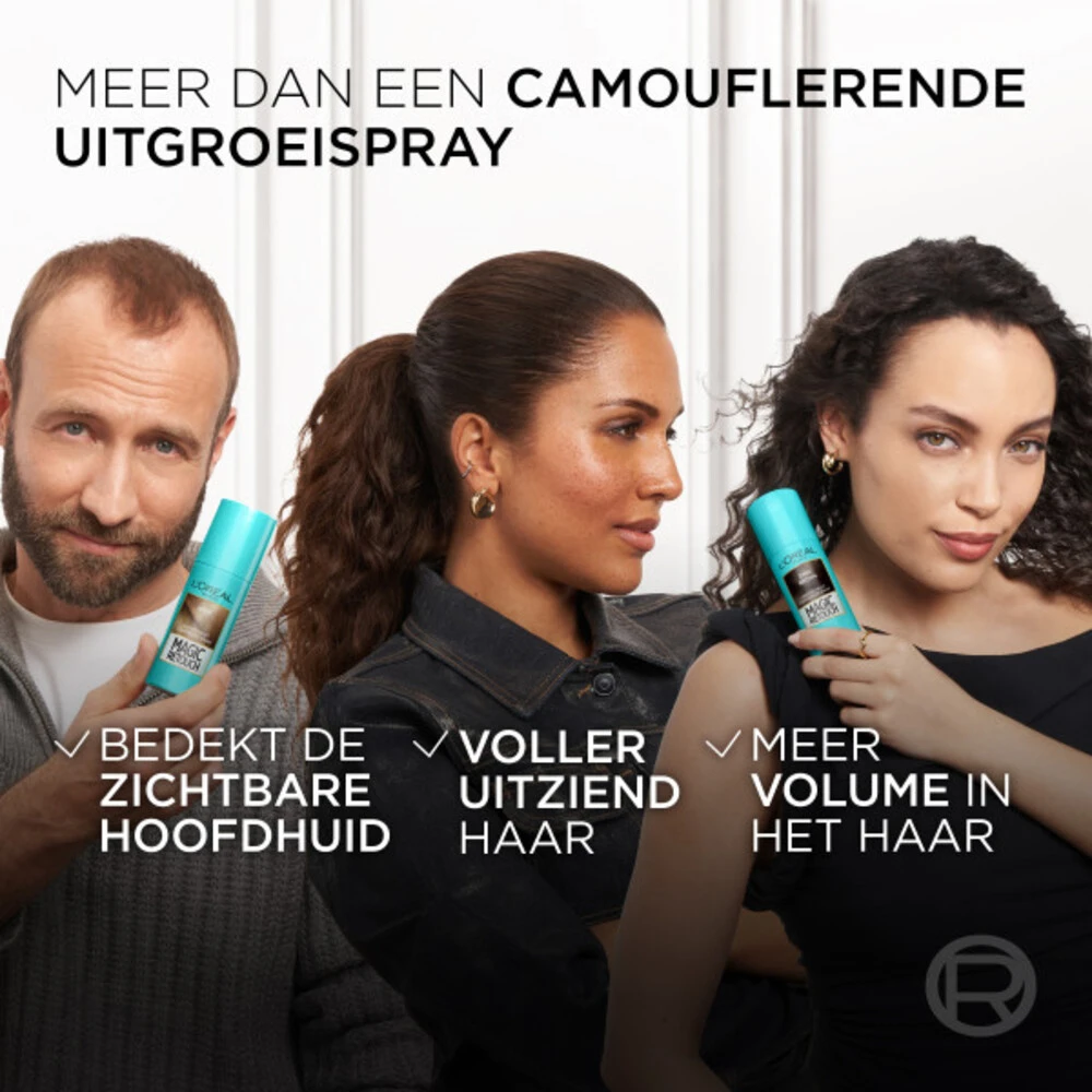 Lu0027Oréal Paris tijdelijke haarkleuring Magic Retouch Uitgroeispray Lichtblond 75 mlVoor blondines met donkere wortelsDe Magic Retouch camouflerende uitgroeispray van Lu0027Oréal Paris mengt zich met je natuurlijke haarkleur, waardoor je donkere wortels onmiddellijk gecamoufleerd zijn. De spray droogt binnen een paar minuten en wordt uitgewassen met de eerstvolgende wasbeurt.Camouflagespray voor donkere haaraanzet of wortelsMatcht met blonde haartintenGemakkelijk en snel aan te