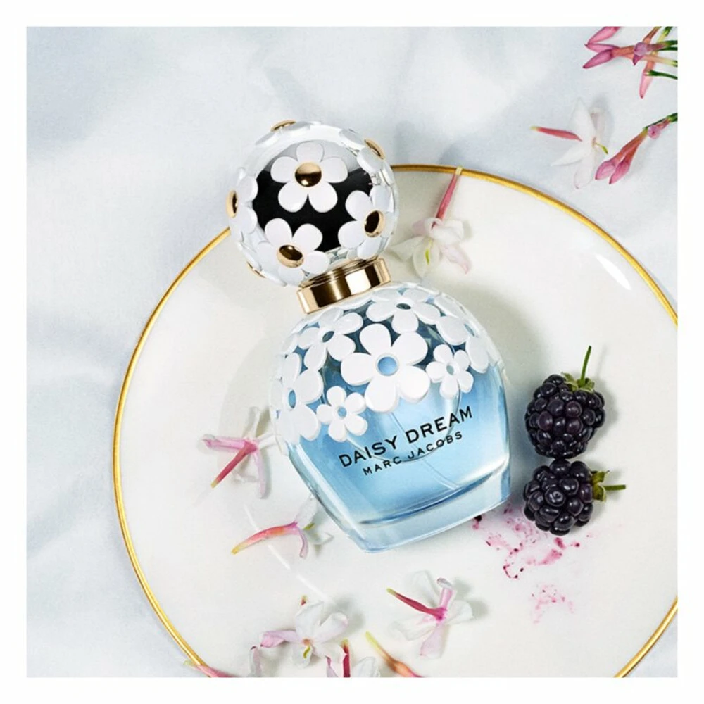 Marc Jacobs Daisy Dream Eau De Toilette Spray 50 mlHet lichte en luchtige Daisy Dream trekt de aandacht met zijn heerlijke persoonlijkheid vol fruit en bloemen. Vanaf de eerste hints van braam, verse grapefruit en sappige peer krijgt Daisy Dream je in de ban, met zijn vlotte charme en onweerstaanbaar vrouwelijke mix van jasmijnbloesem, lychee en blauwe regen. Het parfum blijft dapper hangen en loopt uit op een grondtoon van blank hout, muskus en een ongrijpbare zweem van kokoswater.Het heldergla