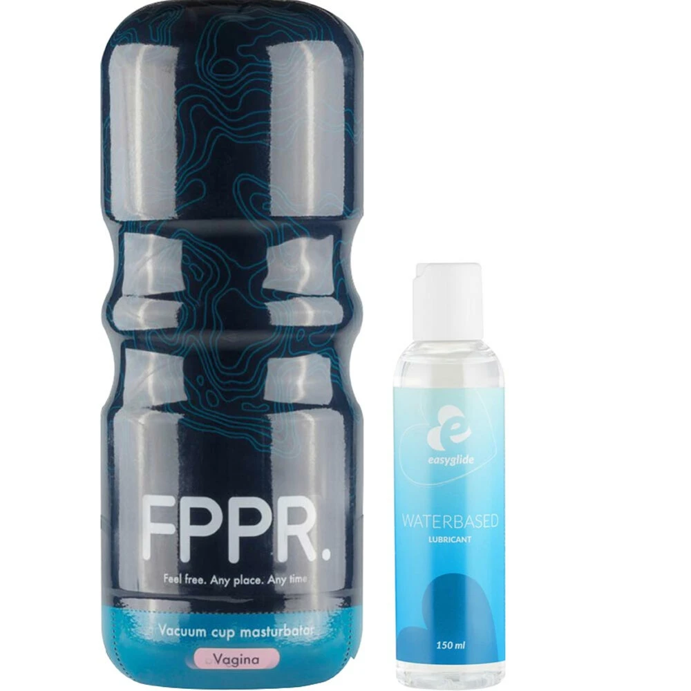 Masturbatie Pakket: FPPR. Masturbator Vagina en Easyglide Glijmiddel op Waterbasis 150mlGeniet van een intense stimulatie en een onvergetelijk hoogtepunt met deze masturbator uit de FPPR. collectie! De sleeve heeft een aantrekkelijke realistische kleur en een realistische vaginaopening. De binnenkant van de sleeve is voorzien van noppen en ribbels die jouw penis maximaal stimuleren. Haal de sleeve na gebruik uit de behuizing en maak hem goed schoon met water en toycleaner of een milde antibacter