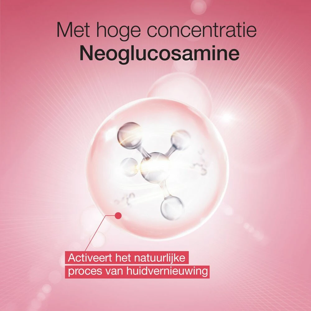 Neutrogena Glow Boost Revitalizing SerumNeutrogena Glow Boost Revitalizing Serum vernieuwt de huidcellen en helpt huidveroudering te voorkomen met een gelijkmatige, stralende huid als resultaat. De wetenschappelijk bewezen formule bevat de hoogste concentratie Neoglucosamine®, een aminosuiker dat actief wordt bij de eerste tekenen van huidveroudering. De natuurlijke celvernieuwing van het huidoppervlak wordt versneld en tekenen van roodheid en ongewenste pigmentvlekken worden gecorrigeerd. I