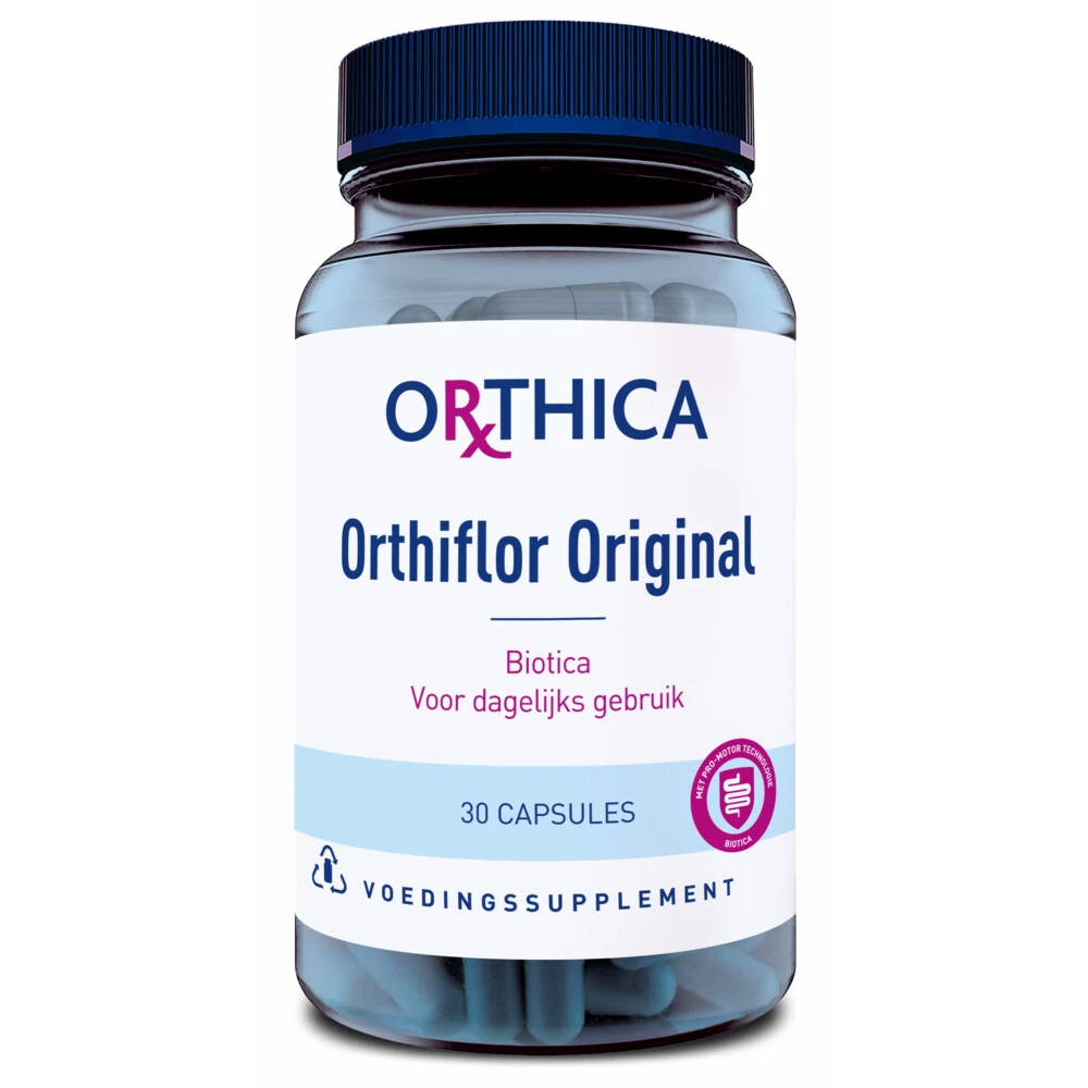 Orthica Probioticamix met negen bacteriestammenOrthiflor Original is een probioticapreparaat dat negen verschillende bacteriestammen bevat en geschikt is voor dagelijks gebruik. Het probioticum is voor dagelijks gebruik en bevat Pro-motor(1) waardoor lang inweken niet meer nodig is. Pro-motor zorgt ook voor een goede overleving van de bacteriën in het lichaam. Orthiflor Original bevat 20 keer meer bacteriën dan Orthiflor Basic. Orthiflor Original is geschikt voor elke dag, maar je kunt
