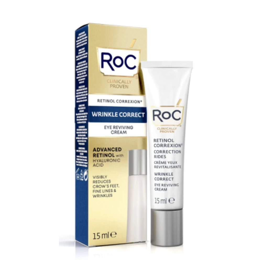 RoC Retinol Correxion Wrinkle Correct OogcrèmeMet de combinatie van geavanceerd retinol en hyaluronzuur vermindert deze oogcrème fijne lijntjes en rimpels zichtbaar. Een lichte, vloeibare oogcrème die geschikt is voor alle huidtypes.Geformulateerd voor gebruik rond het gevoelige ooggebiedLichte, niet vette, zijde-acgtige testuurGeurvrijVermindert zichtbaar kraaienpootjes, fijne lijntjes en rimpelsVermindert zichtbaar rimpels direct na het aanbrengen en na 3 weken