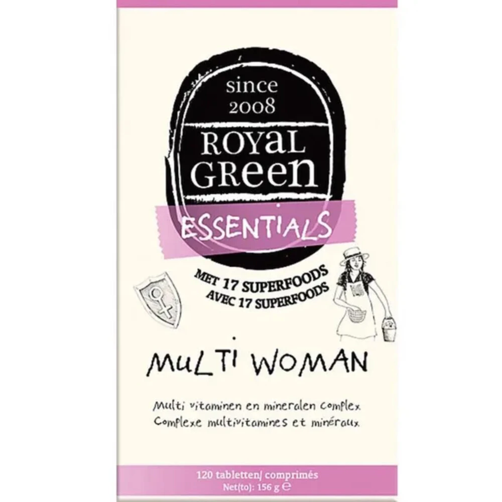 Royal Green Multi WomanRoyal Green Multi Woman levert essentiële vitaminen en mineralen die een vrouw nodig heeft in de vorm van voeding. Zo komt onze vitamine C uit Acerola bessen, verschillende B-vitaminen uit een unieke mix van Guave, Holy basil en Citroenschil en komt onze Selenium uit mosterdzaad.